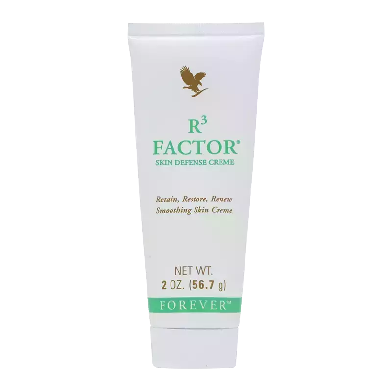 Ajuda a sua pele a manter a sua umidade natural, restaurar a sua resiliência e renovar a sua aparência com R3 Factor® Skin Defense Creme - uma combinação rica de aloe vera gel estabilizado, colágeno solúvel e ácidos alfa-hidroxi, fortificados com vitaminas A e E.